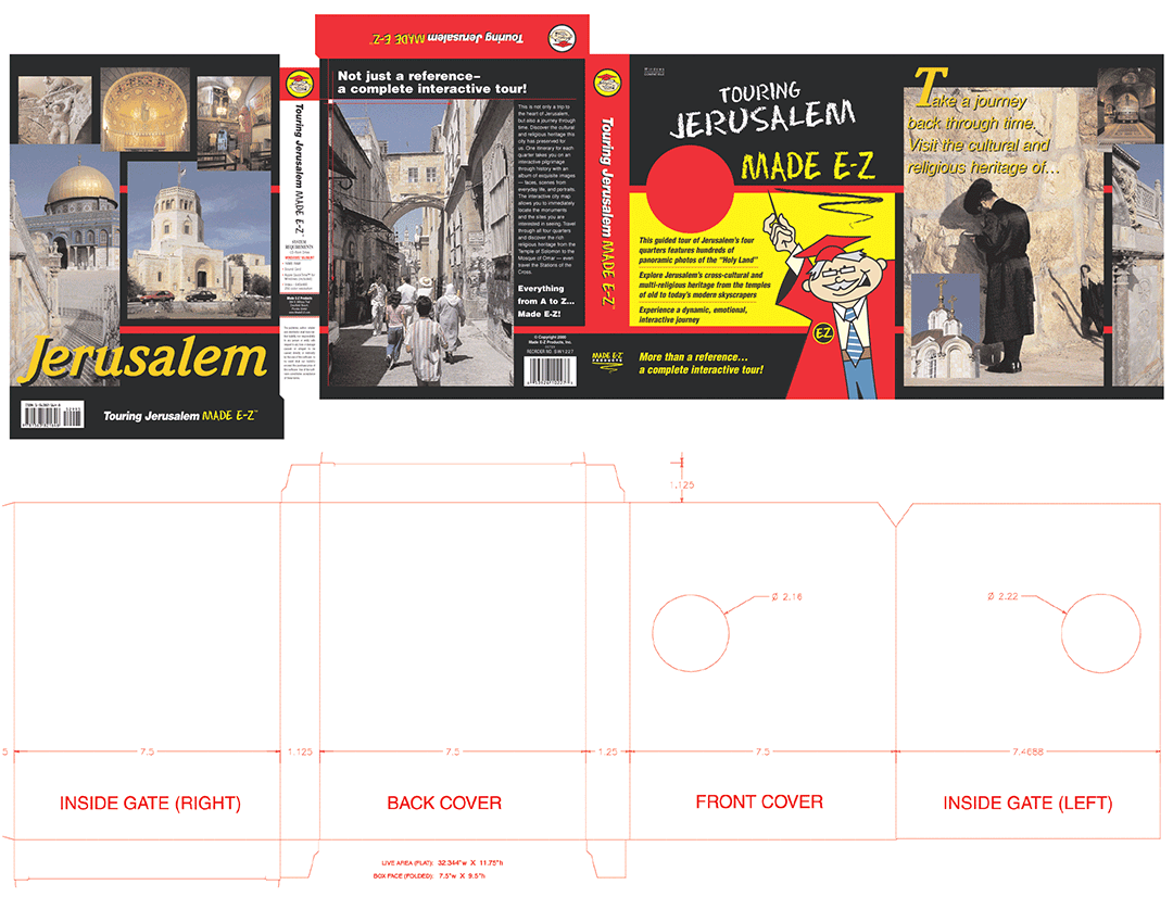 Made E-Z Products Touring Jerusalem Dielines Produced while working for Made E-Z Products, Inc. Supplied to Printer as a PDF file. Back to box. Previous Box Next Box