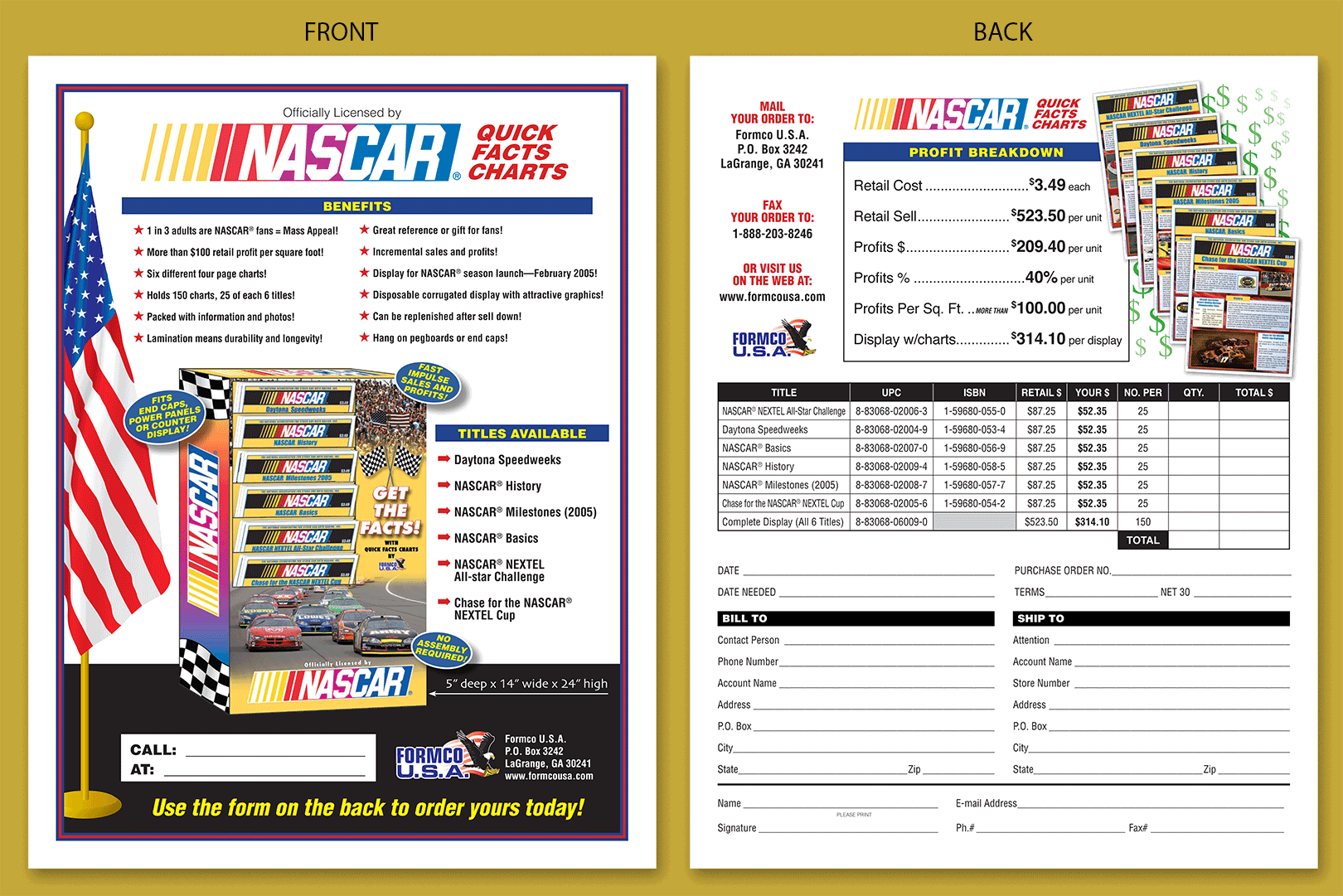Flyer Formco USA NASCAR Produced by Miller Design Pros for Formco USA, Inc. Supplied to them as a Press Quality PDF file. Previous Flyer Next Flyer