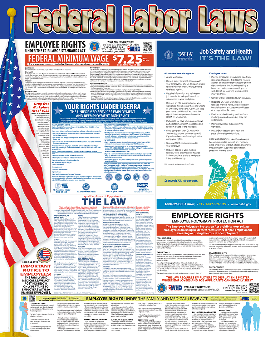 22.67″x28.67″ Federal Labor Law With USERRA 50+ Employees